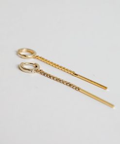 You won’t have to dive to depths of the ocean to capture the beauty of the Alina Gold Rhinestone Drop Earrings! These cute earrings feature a huggie hoop design with a rhinestone chain drop + a lever back! Style the Alina Earrings with any outfit for an elevated look! Gold Plated Huggie Hoop Rhinestone Chain Drop Lever BackOne Size | Length 2″